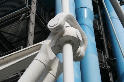 まるで機械部品デザインを数百倍に拡大したような工芸的なジョイント鋳物が力強く美しい。ピアノロジャースだが、ハイテク、というよりも、クラフトマンシップに支えられたとてもsystematicな建築、という感が強い。