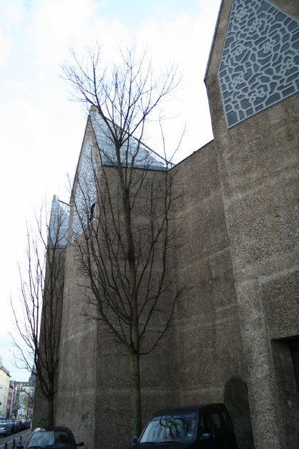 ケルンの街並みは多くが戦争で焼けて、その後50年代に建てられたビルが多い。その焼けなかった古いビルと50年代のビル、近年建てられた現代建築が共存している。焼け残ったビルの上に新しいビルが増築されたりしていて、文字通り新旧積層されている。時代を追うごとに装飾がなくなりフラットな壁面になるのがわかりやすい。